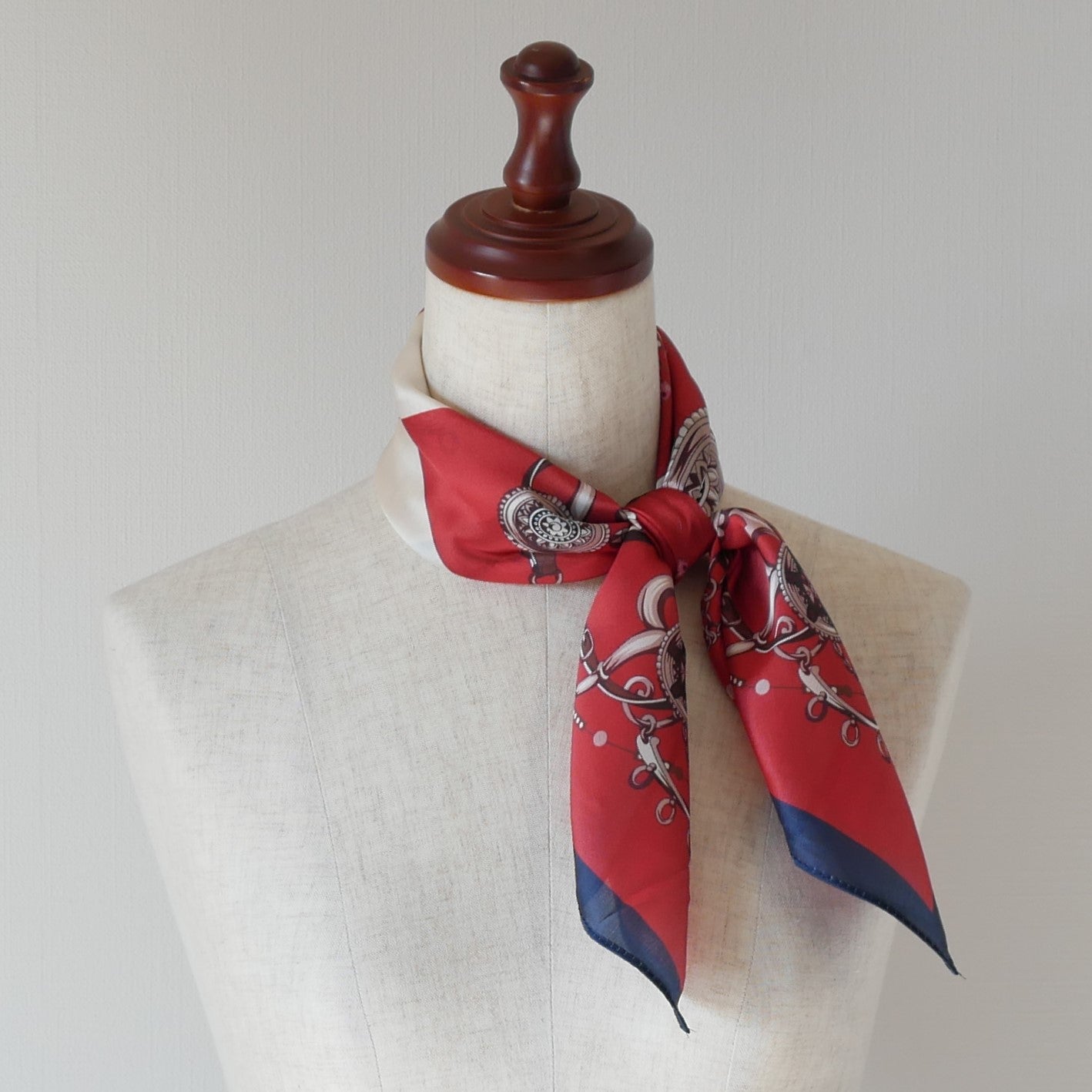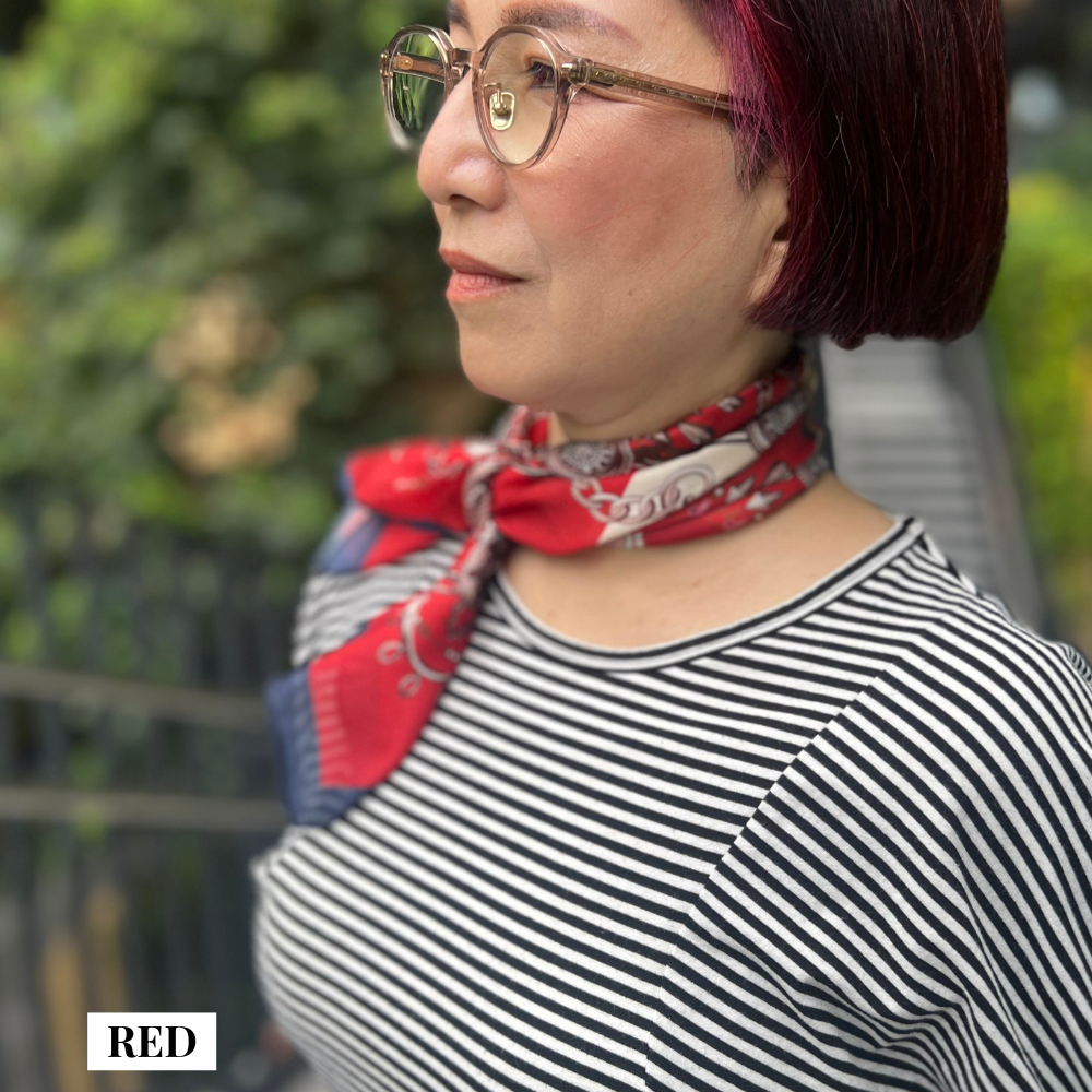 首に巻くだけでなく、ヘアアレンジやバッグに結んでも上品に映える -